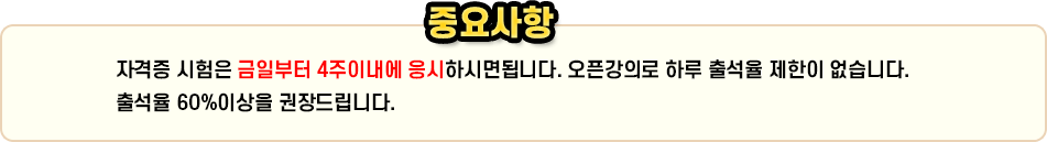 | 1회 자격증 시험 재응시 안내입니다. | 2024/02/02 |